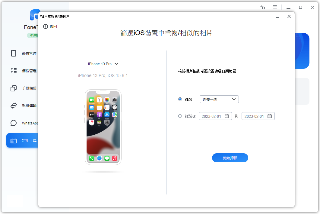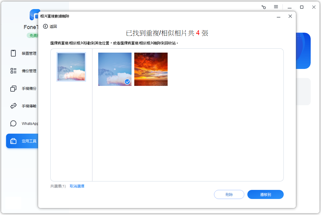 透過 FoneTool 查找並刪除 iPhone 重複照片