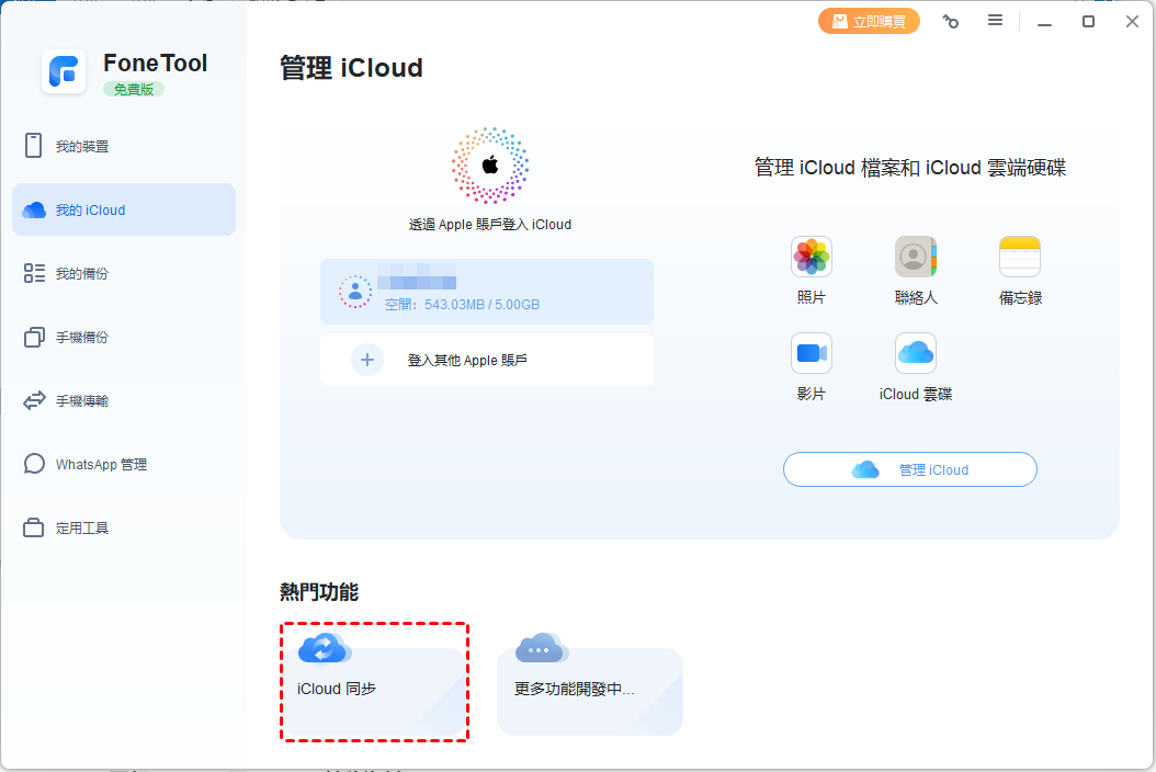 2. 登入成功後在熱門功能處點擊iCloud同步。