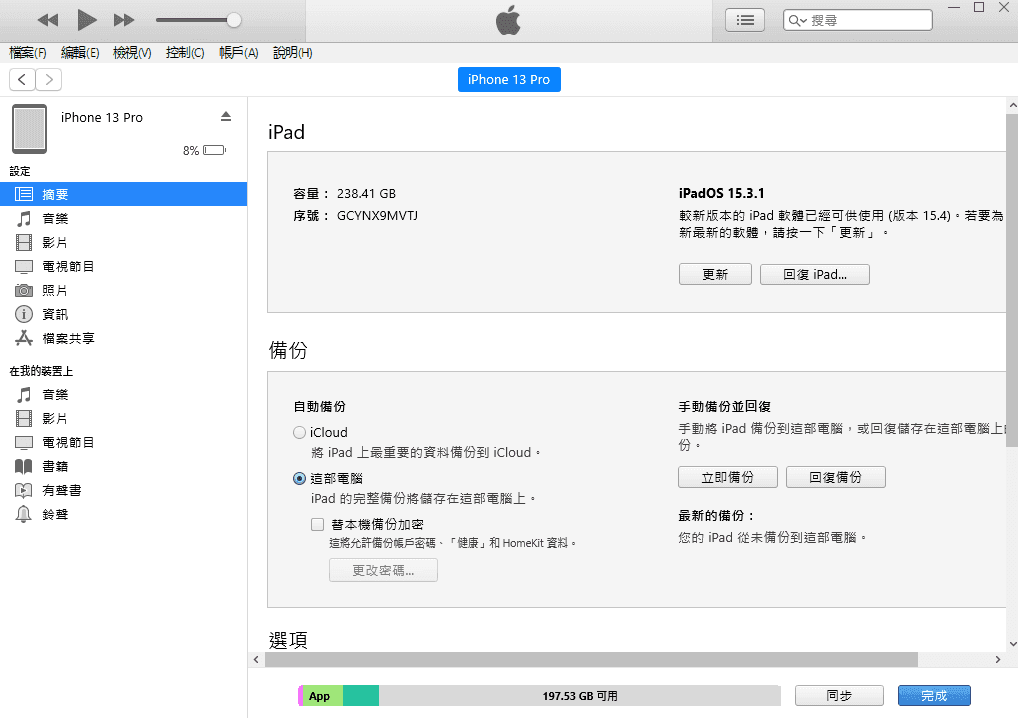 iTunes從舊iPad傳送數據到新iPad的步驟: