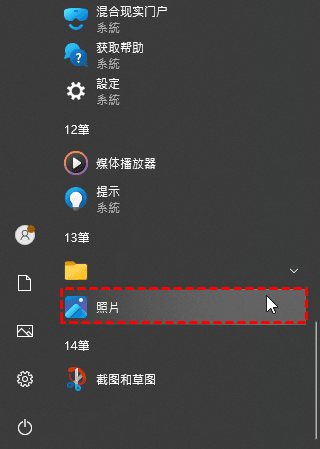 點擊電腦上的開始按鈕,點擊照片,如果沒有使用搜尋框中進行搜尋。