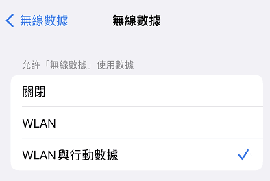 設定 > 照片 > 無線數據 > 再次點擊無線數據 > 允許使用WLAN與行動數據。