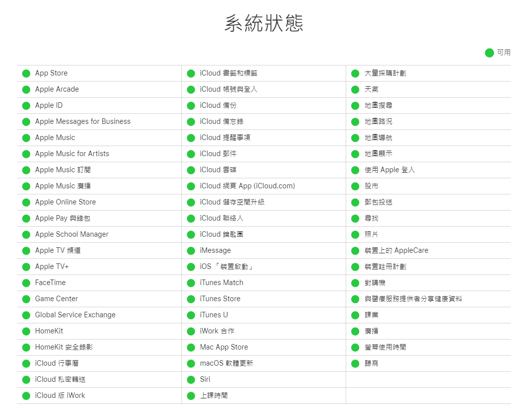 當iOS更新顯示未連接互聯網時,除了iPhone本身的問題意外,終端可能也會讓您無法連接到伺服器。如果訪問伺服器的用戶太多或工程師正在維護伺服器,則可能會出現此問題。因此,您可以前往蘋果系統狀況檢查它。