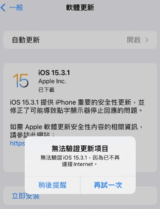 更新iOS是需要强大且穩定的互聯網,當網路不穩定,在更新iOS時,可能會收到無法驗證iOS,因為已不再連接Internet的提示。現在,透過下面的提示,您將知道如何修復無法驗證更新項目iOS 26/16/15的方法。