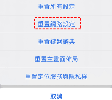爲了避免任何導致iPhon卡在傳輸數據上的未知網路問題,您也可以選擇重置網絡來排除這一問題的產生。