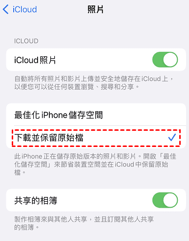 設定 > 照片 > 下載並保留原始檔,然後在打開Windows檔案總管,看看照片和視訊是否有正常顯示在電腦。