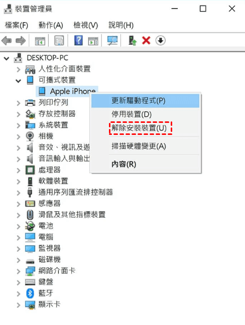如果iPhone連接電腦後,電腦偵測不到iPhone,您可以更新或重裝Apple USB驅動程式來解決這個問題。因為Apple USB驅動程式用於iOS裝置和Windows電腦之間的數據通信。通常,他會在您第一次連接iPhone到電腦時自動安裝,但時間太久它可能會過失。所以,在您發現電腦找不到iPhone時,可以重新安裝Apple USB驅動程式。