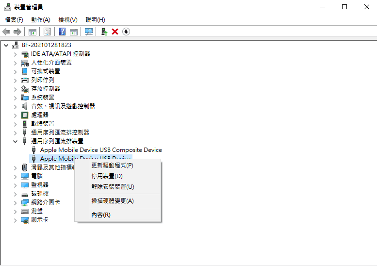 3. 右鍵點擊Apple Mobile Device USB Device。
