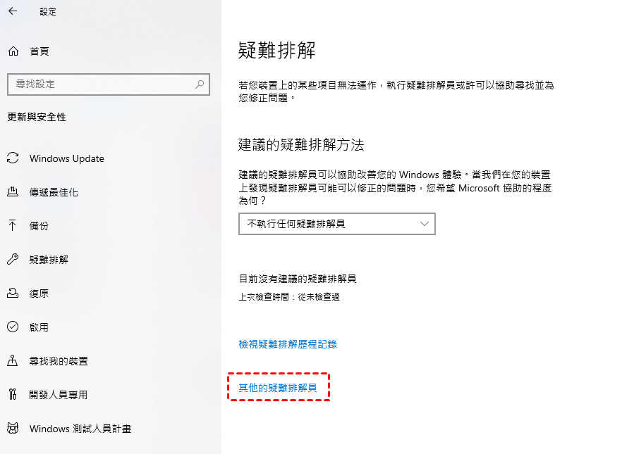 2. 點一下其他的疑難排解員。