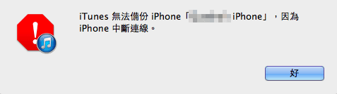 iTunes無法備份iPhone,因爲iPhone已經斷開連線