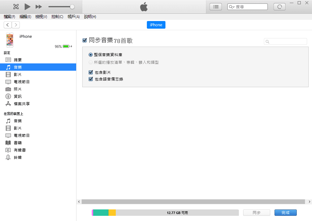 如果您發現僅同步選項顯示為灰色,選中的歌曲和影片為灰色,或者iTunes庫中的某些歌曲顯示為灰色,您可以讓它們是可選的。