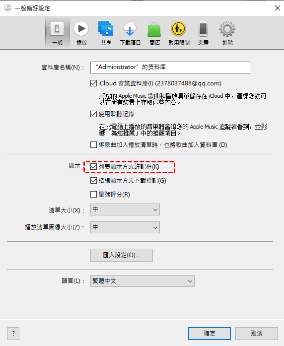 步驟2. 在一般視窗中找到並勾選列表顯示方式註記框。