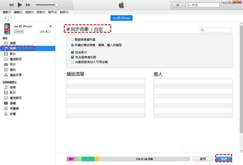 步驟7. 單擊底部的完成以將音樂同步到 iPhone 。