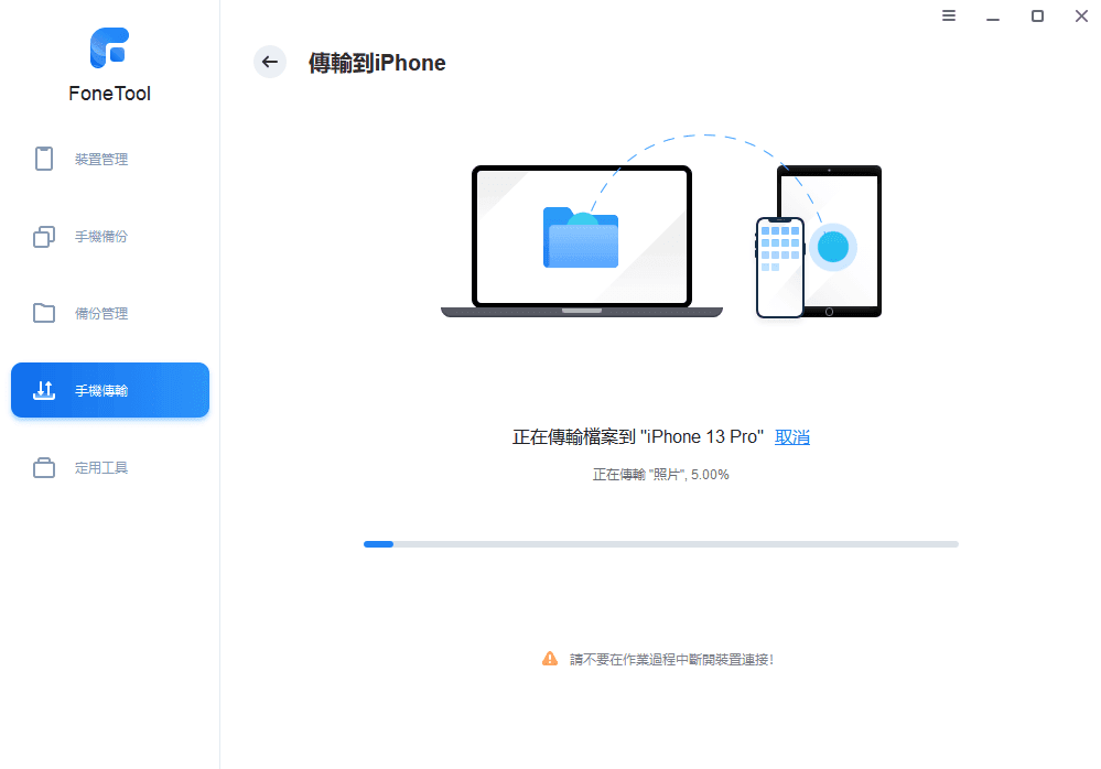 想在沒有iTunes的情況下將音樂從外接硬碟傳送到iPhone/iPad,您可以依靠FoneTool,這是一款專業的iOS數據管理,它可以幫助您以簡單、快速和安全的方式傳送音樂到iPhone/iPad。