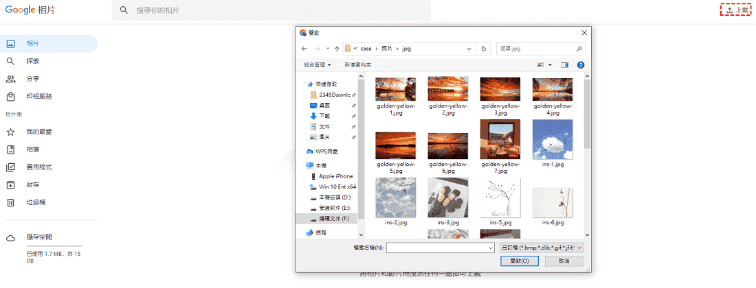 2. 將電腦上的照片上傳到Google Photos:您可以重新建立一個資料夾來儲存照片,也可直接將照片儲存在以前建立的資料夾中。