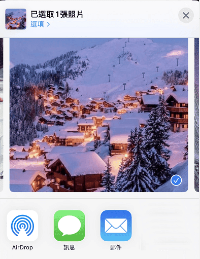 2. 在iPad上:開啓照片應用程式 > 選取要傳輸到iPhone的照片 > 點擊共享圖標 > 選取您的iPhone。