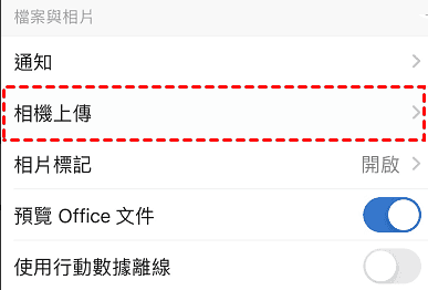 步驟3. 點擊設定 > 選取相機上傳 > 打開相機上傳。