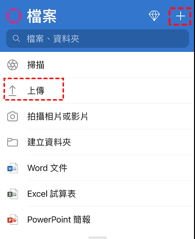 OneDrive 的自動上傳是將手機中的所有照片上傳,如果您不想上傳所有的照片,可以自己手動上傳照片到 OneDrive 。按照下面的作業方式手動上傳 iPhone 照片到 OneDrive 。