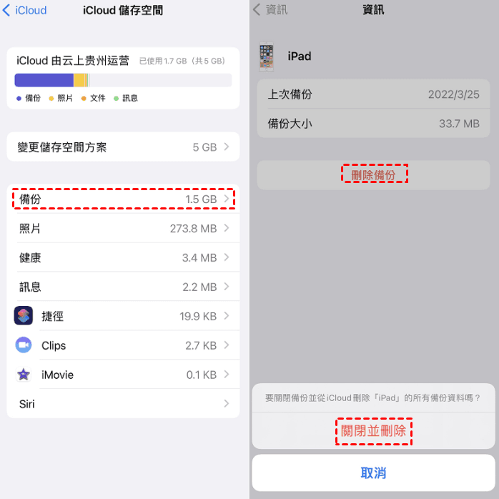 如果您發現iCloud備份卡住,可以透過下面的步驟刪除iPhone備份。