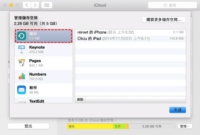 iCloud初始空間只有5GB,在您沒有升級空間的情況下,您很快就會接收到iCloud存儲空間已滿的通知。因此爲了能不斷備份新的iPhone資料,您需要刪除之前很多舊的iCloud備份以釋放iCloud存儲空間。