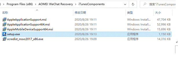 進入MyRecover for iOS的安裝目錄,找到“iTunesComponents”資料夾。點一下其中的“setup.exe”重灌相關元件。或者,您可以嘗試重灌一次MyRecover for iOS,已解決iTunes元件缺失問題。