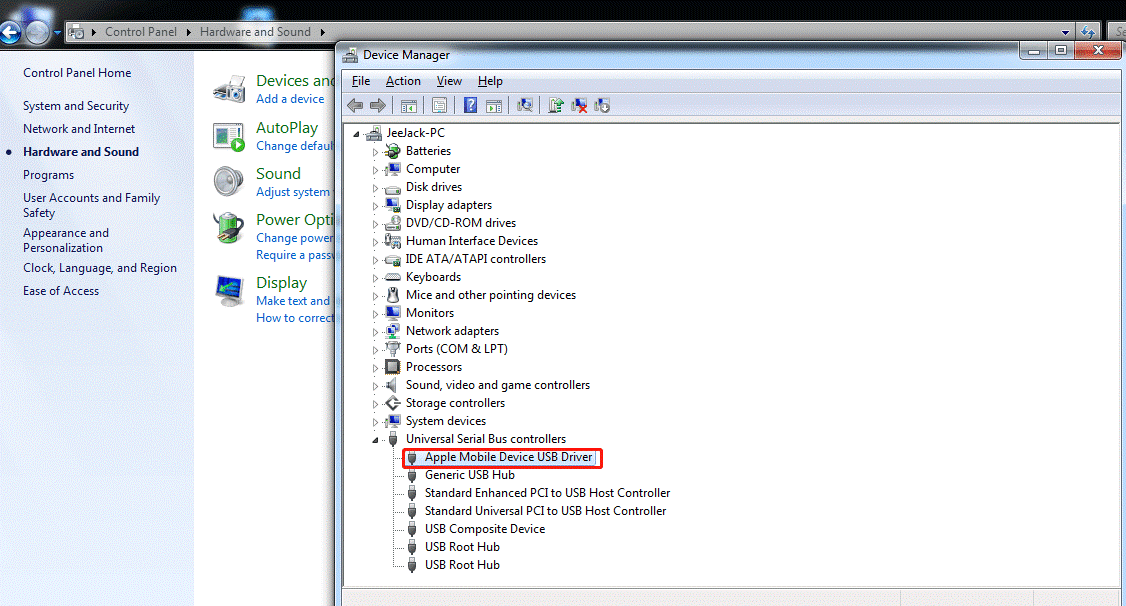 6. iPhone通過USB數據線連接到電腦後,請檢查電腦上是否安裝了裝置驅動,如果連接iOS裝置後無法正常識別,可嘗試手動重灌或者更新裝置驅動。