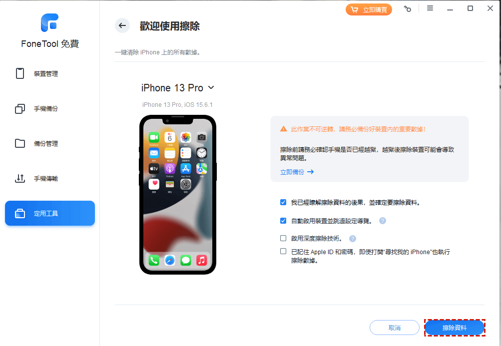 FoneTool是一款專業可信賴的備份軟體,用戶可以靈活選擇想要備份的資料類型,軟體將妥善保護用戶的資料。