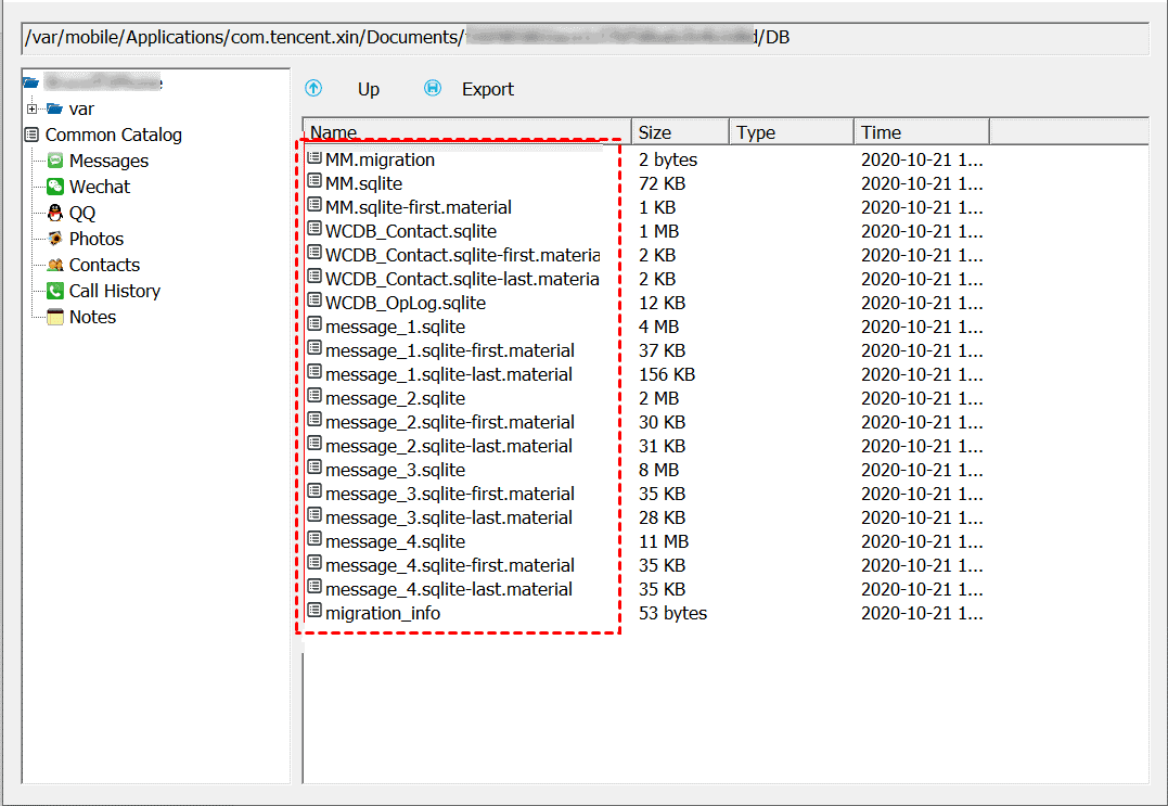 蘋果手機微信聊天記錄是儲存在SQLite格式的資料庫内,通過iTunes資料查看工具,可以找到具體的聊天資料位置(如下圖所示)。