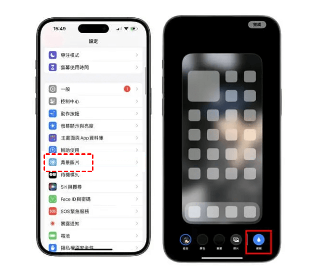 步驟1. 前往 iPhone 上的設定應用程式 > 找到並選擇背景圖片。