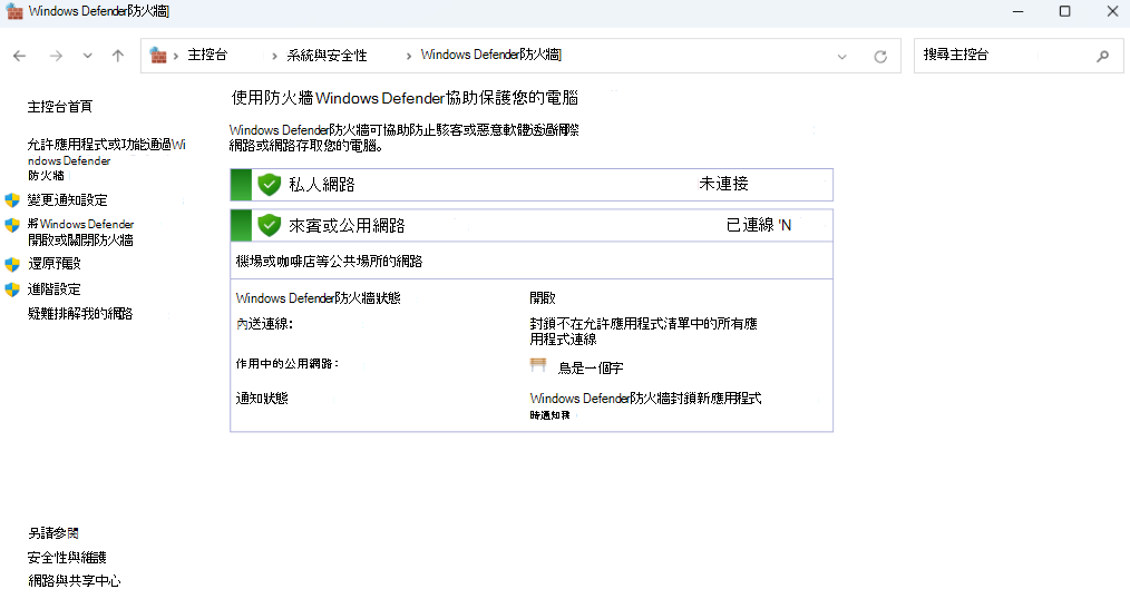 2. 點擊「開啟或關閉 Windows 防火墻」> 在「私人網路」和「公用網路」選項下「關閉 Windows Defender 防火墻」,點擊「確定」即可。