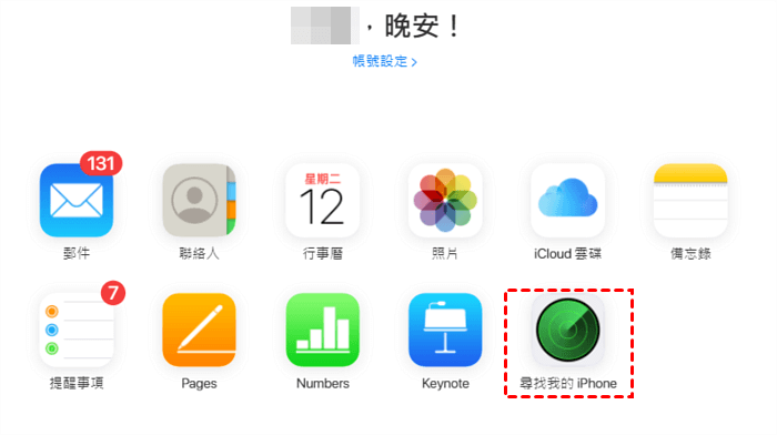 步驟1:使用您的Apple ID登入iCloud.com,點一下“尋找我的iPhone”。