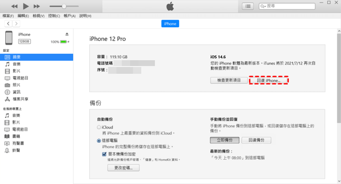 完成以後就可以從剛剛做好的備份復原iPhone,並檢查是否還有熒幕失靈的問題了。