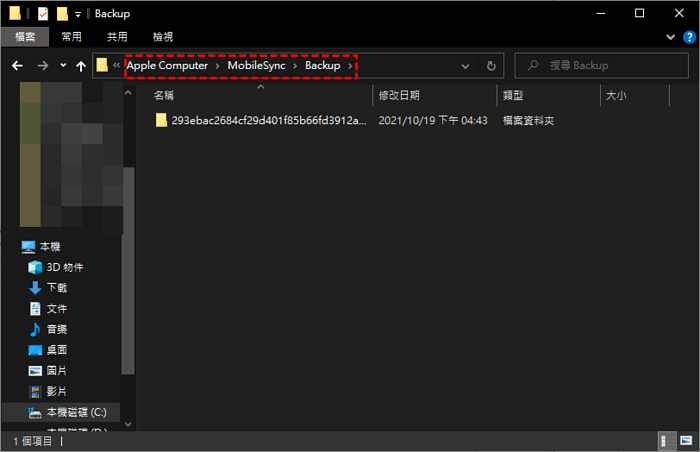 步驟二:前往“Roaming” > “Apple Computer” > “MobileSync” > “Backup”,找到您有問題的備份檔案資料夾,按下“Ctrl+C”複製這個(多個)資料夾,再將資料夾用”Ctrl+V“貼上桌面。
