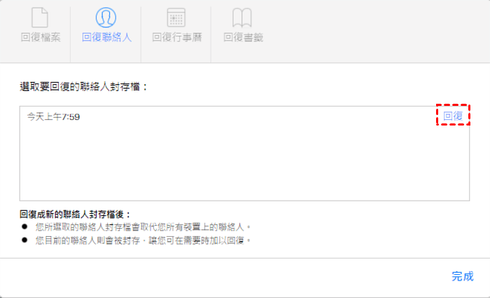 方法1:使用iCloud官網内建功能進行iPhone通訊錄還原
