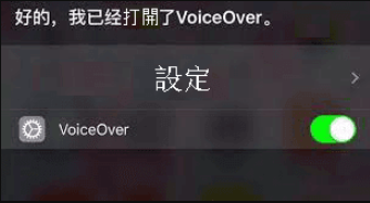 2. 之後輕點兩下主畫面按鈕,並移動 VoiceOver 將其打開。