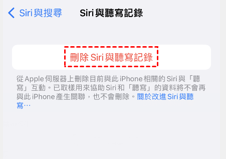 3. 要繼續,只需點一下刪除Siri和聽寫歷史記錄按鈕即可。