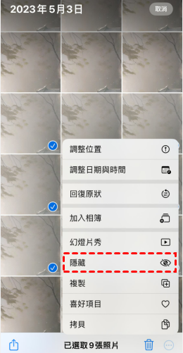 如果您需要在iPhone上隱藏多張照片,步驟其實與隱藏單張照片步驟幾乎相同,都是: