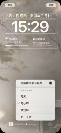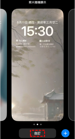 按住螢幕 > 然後解鎖您的iPhone以進入景深效果 > 點一下螢幕底部的自訂 > 點一下小部件區域以編輯小部件,或點一下-圖示將其刪除。