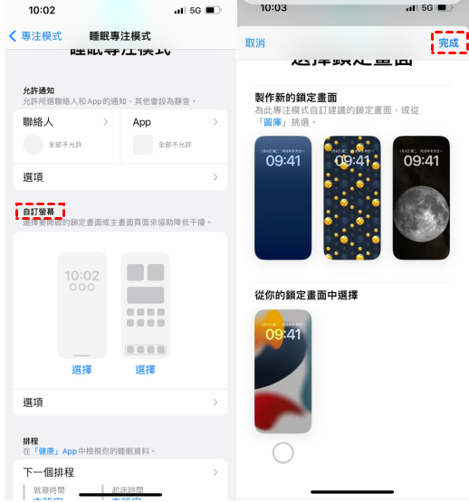 2. 選取你要自訂的專注模式,然後在自訂螢幕選項下選擇鎖定畫面。