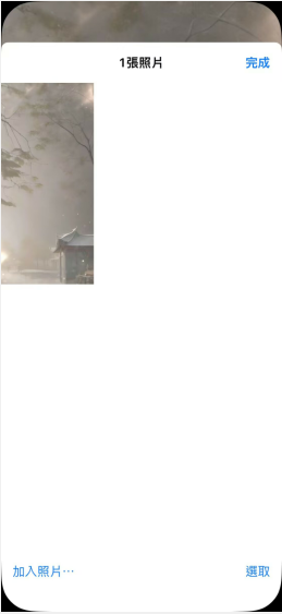 2. 點一下左下角的圖示 > 點一下加入照片 > 添加多張照片 > 將其全選 > 點一下完成。