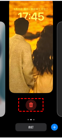 只需長按並解鎖iPhone即可進入編輯模式 > 找到要刪除的鎖定螢幕 > 向上滑動然後刪除壁紙,之後鎖定螢幕就會被刪除。
