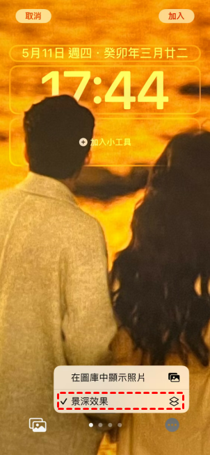 2. 點一下加入小工具,選取要添加到鎖定螢幕的小部件 > 點一下完成。