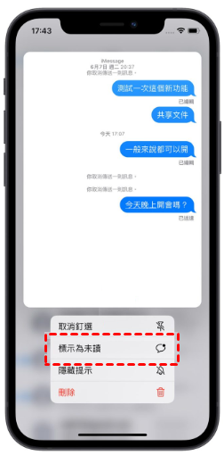 2. 長按訊息,然後在彈出的視窗中將訊息標為未讀。