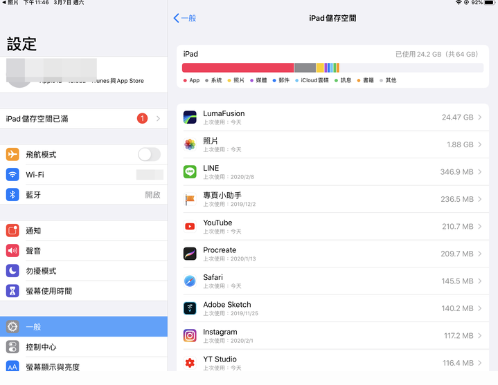 iPad儲存空間已滿?