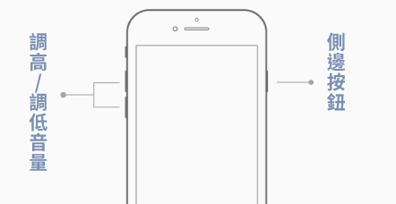 - 快速按一下調高音量後鬆開 > 在快速按一下調低音量後鬆開 > 最後一直按住側邊按鈕(側邊按鈕),直到出現Apple標誌後放開。