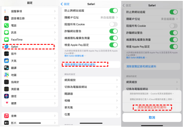 iPhone 瀏覽器暫存記憶體清除方法