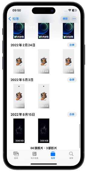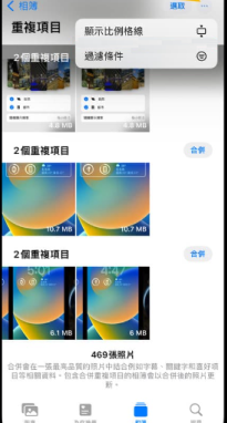 將iPhone升級到iOS 16或更新版本後,您可以直接在照片應用程式中管理重複照片。或者,您可以選擇先過濾重複項,以使iPhone根據需要顯示所有或僅顯示重複的照片或影片。