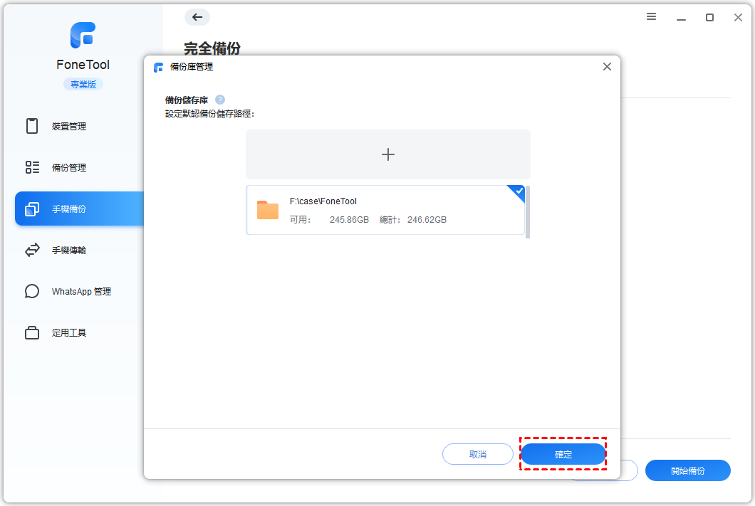 2. 點一下手機備份 > 選取完全備份(您也可以選取自定義備份您喜歡的數據)。