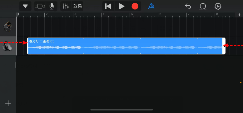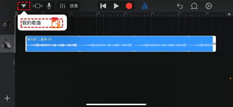 4. 修剪完成後,點擊左上角的左上角的下三角圖示 > 點擊我的歌曲保存歌曲。