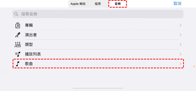 3. 點擊音樂 > 選取需要匯入iPhone的MP3。