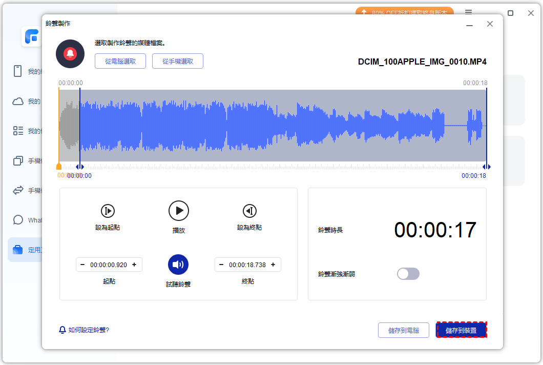 4. 完成鈴聲設定後,點擊儲存到裝置。